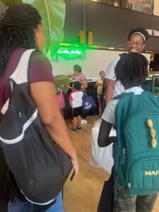 Attorney Candace Jaimes speaking with a parent